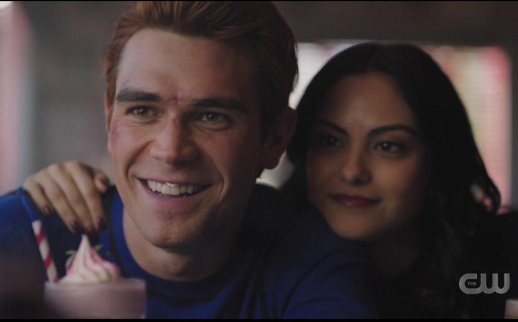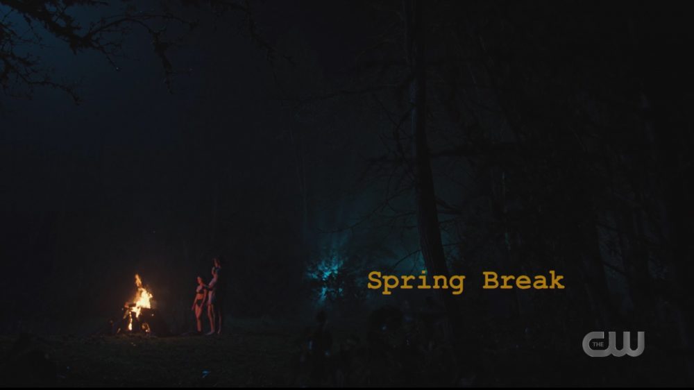 Flash forward to spring break senior year. Archie is shirtless (of course) and covered in blood. Betty and Veronica are in their underwear. Betty says they need to wash and burn all their clothes and Jughead’s beanie. And that they can never speak of this again, will graduate and go their separate ways. Archie throws the beanie into the fire. What. The. Heck?