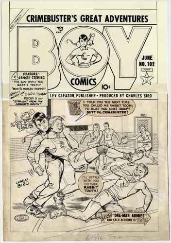 There are indeed some good deals. If you were thinking of buying some Cochran projects, now might be the time. In addition to the EC books, he also published well regarded volumes on classic musicians Les Paul and Chet Atkins. Cochran also sells very rare comics art by Herriman, Caniff and others of that caliber, like the already-sold Charles Biro BOY page above.