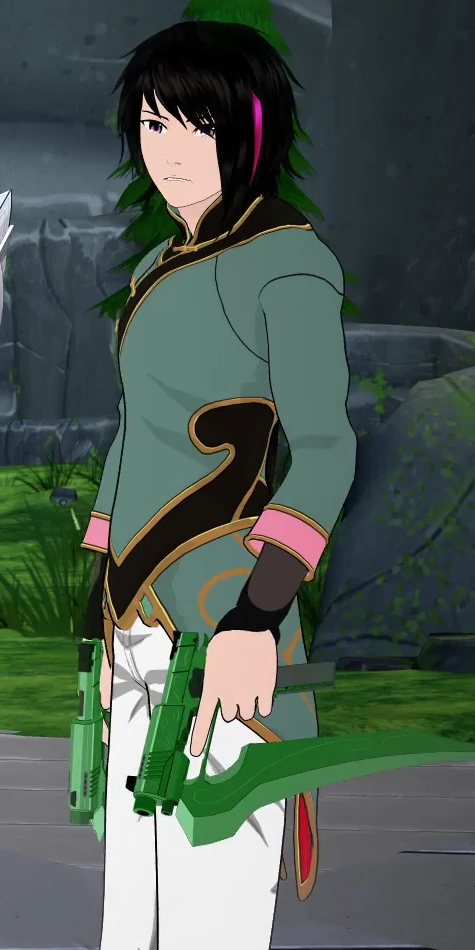 Ren fights with StormFlower, two automatic pistols with blades attached. He also carries and occasionally fights with his father’s dagger. His semblance is Tranquility, which masks negative emotions, allowing himself (and others, when amplified) to avoid Grimm. Ren frequently wants peace and quiet — but as is so often true with the life of a warrior, he usually doesn’t get it.