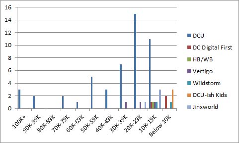 Quick! Look at the far right: no DCU titles selling under 10K! Standard attrition might ruin that for October, but that lowest category has stayed cleaned up for the main line.
