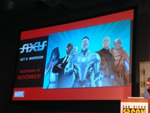 When the floor turned over for Question and Answers from fans, a young man named Rory dressed up like Captain America asked a question about the Fantastic Four. Alonso stated that an upcoming event storyline is going to be more focused on the team. Another fan asked about certain X-Men characters joining the Avengers, and was wondering why there is less cross pollination happening with X-Men becoming Avengers