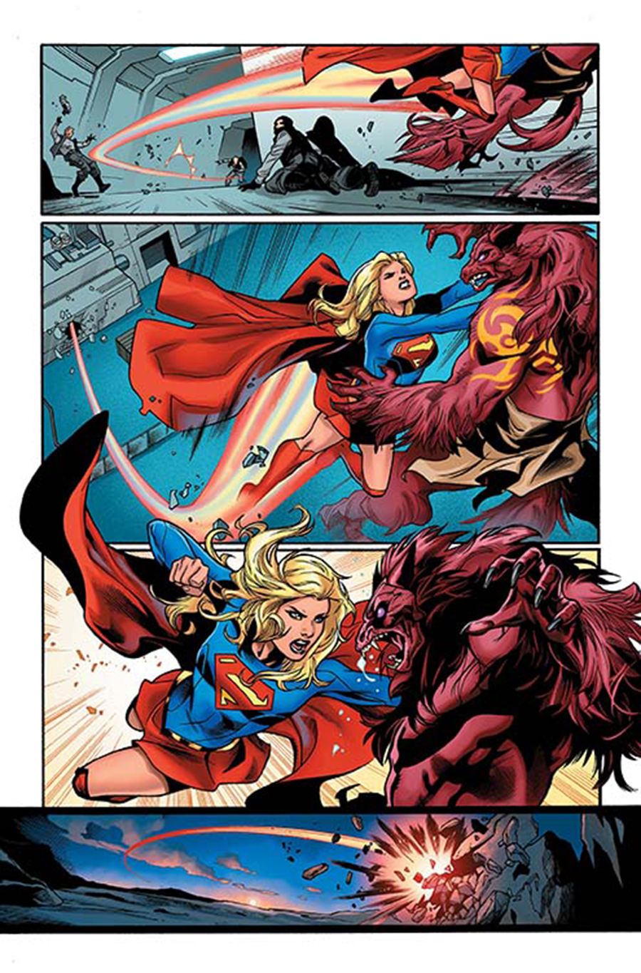 Supergirl: Rebirth is by the artistic team of Emanuela Lupacchino, Ray McCarthy, and Michael Atiyah. Due out in August, here’s a coloured preview of what to expect from the opening issue: