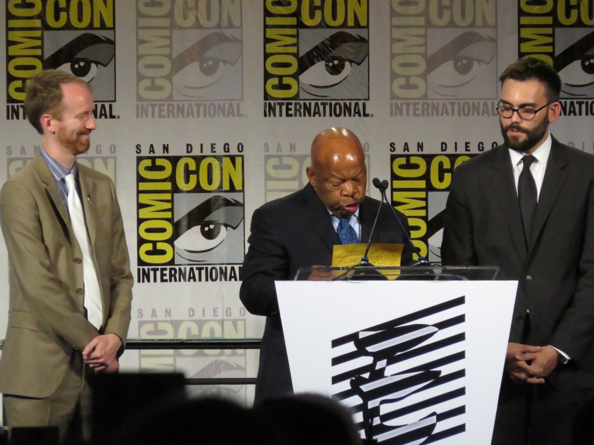 Wyatt Earp, Ron Wimberly, Jason Latour, Andrew Aydin, Congressman John Lewis and Nate Powell. The Bill Finger Award was presented by Mark Evanier. The Spirit of Comics Retailer Award was presented by Joe Ferrara. The Hall of Fame was presented by