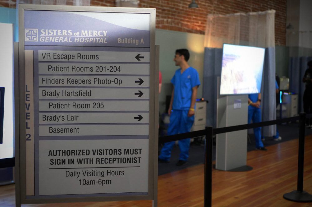 The AR is a cute excuse to comb through the entire activation, but the physical sets of this experience are probably the most unique and rewarding. The area is dressed to look like a hospital, complete with syringes of energy drinks, while the downstairs is a recreation of Brady’s lair: