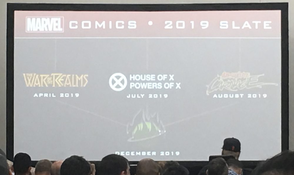 - Dawn of X, with more details to come during Marvel’s Next Big Thing panel. The panel would reveal a slate of X-Men comics spinning out of Jonathan Hickman’s House of X and Powers of X. Gabriel said this is just the first wave of new X-titles, with another round potentially coming in February, unofficially being called ‘Day of X’ around the Marvel offices