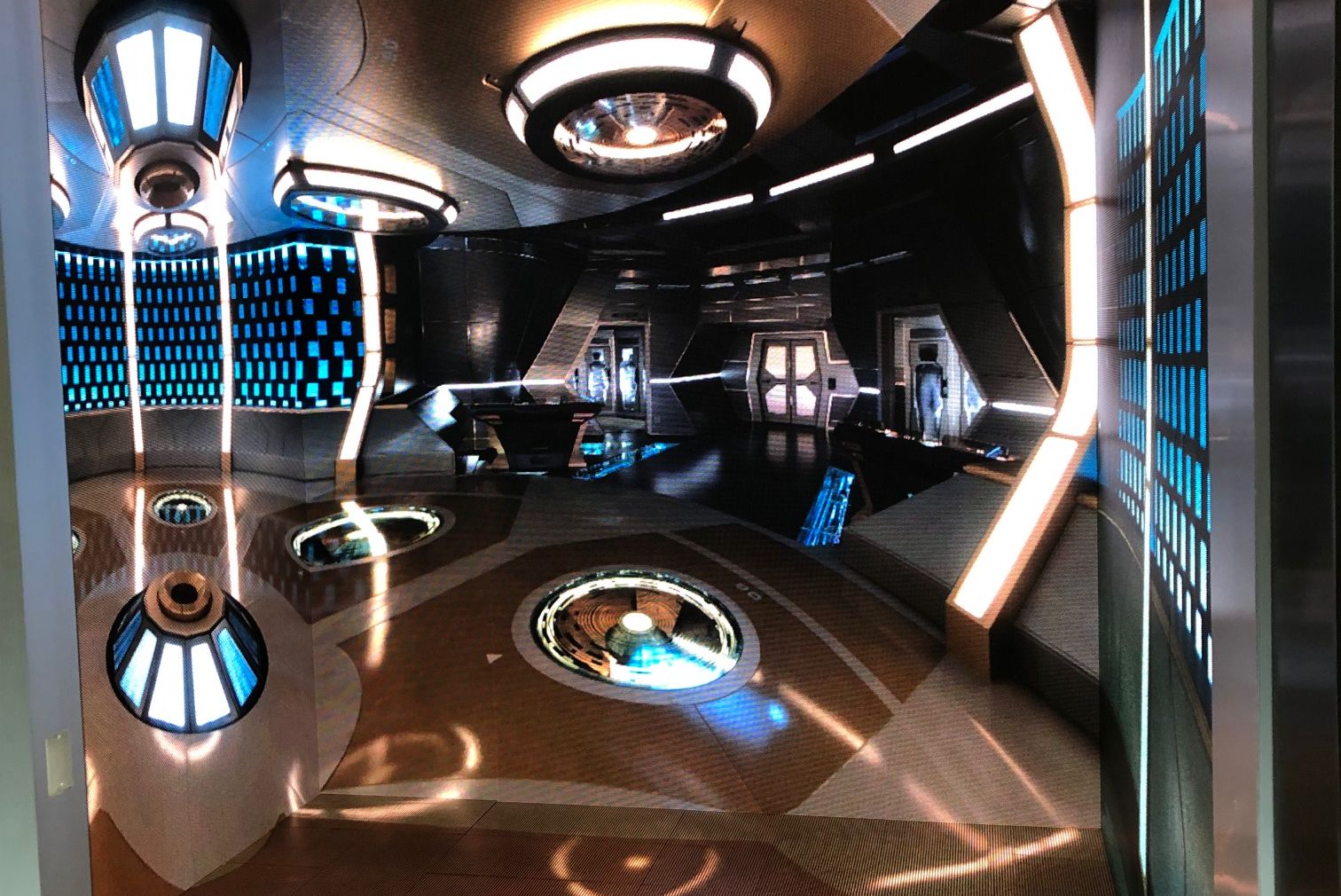 Then one at a time, each recruit gets to head into the Transporter Room to travel the stars. For fans of multiple treks, this is the Discovery transporter room, so don’t expect the shimmering glitter of fancy upgraded tech from the 2370s and 80s of The Next Generation and Deep Space Nine. The Discovery’s Transporter Room is old school, with flashing lights, whirring sounds and bass line thuds. It’s like traveling through space would like to compete with 1990s era raves.