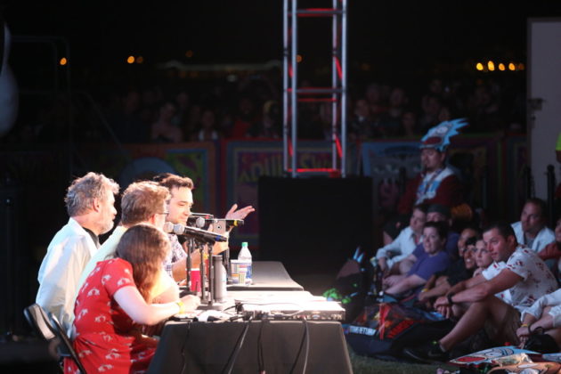 This will be my seventh year in a row producing the Adult Swim event, which started in the Interactive Zone [The PetCo Park parking lot], but it’s now behind the convention center. Last year we did a state park. Before that it was the on the green carnival event. This year – we haven’t announced it yet! But people are already excited to see what it will be. One of my favorite things to do at Comic-Con is just to walk through that Hall H overflow line along the boardwalk, people who are camping out 24 hours and talk to them about what they’re seeing and what they’re hoping for. They are so friendly. The best fans are at Comic-con! It’s inspiring to me not only as a fan of the entertainment industry but as someone who is responsible for production.This is important. You’re not just something that people are walking by. People plan their annual vacations around Comic Con and it’s important for not just the brands but for the producer to respect that and really make sure we’re putting in a full effort into what is valued by fans and trying to provide that value.