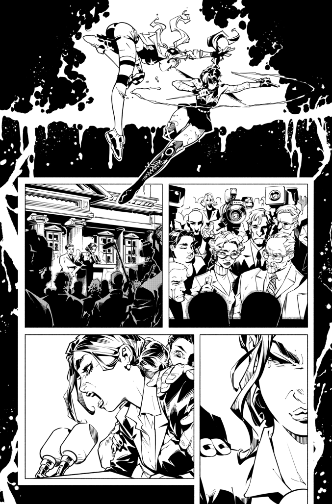 The first issue of Punchline: The Gotham Game will feature covers by Melnikov, Guillem March, Rafael Albuquerque, and more. Check out some interiors from Melnikov below.