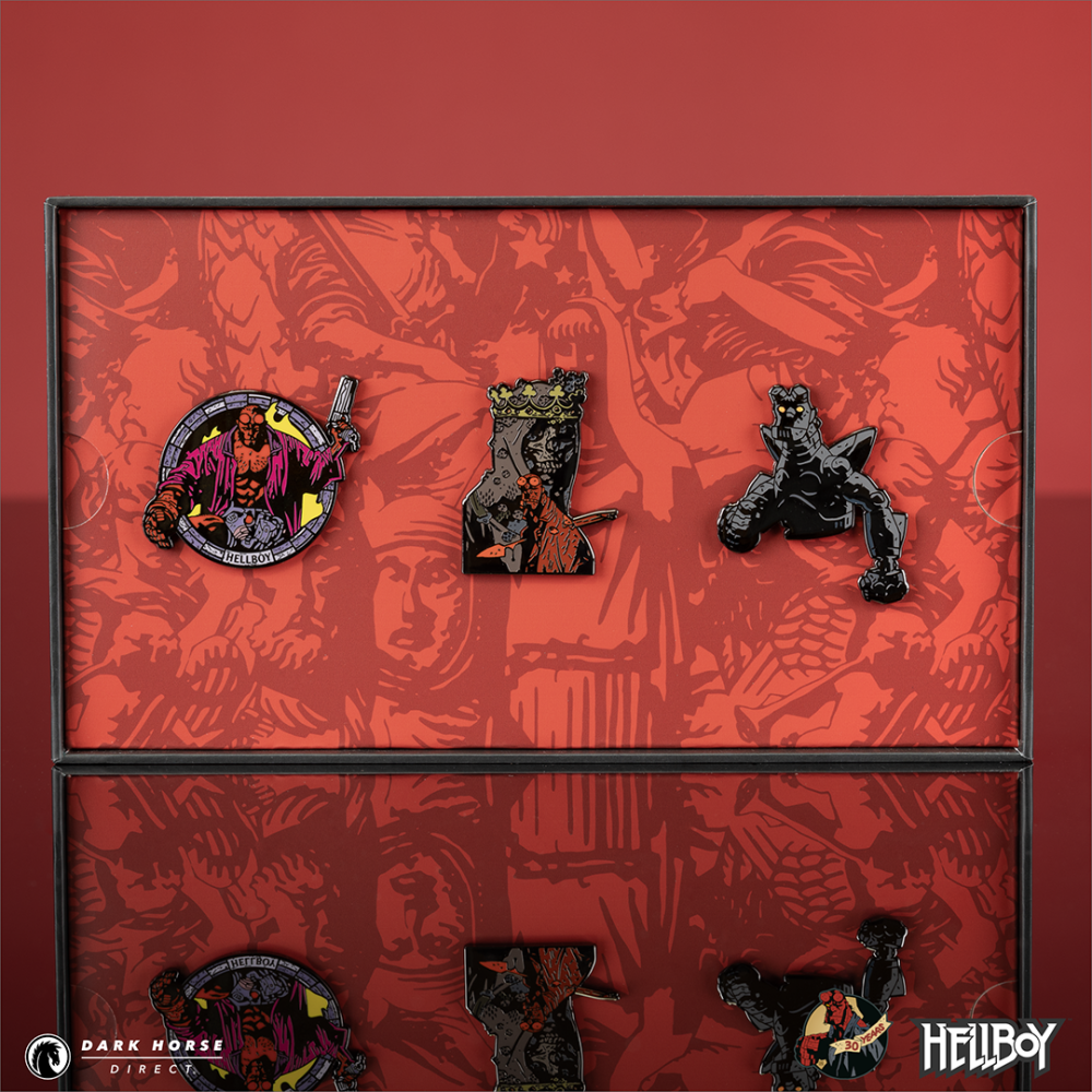 The augmented reality Hellboy 30th Anniversary Pinfinity Set features three detailed enamel pins depicting Mike Mignola’s iconic artwork including: Hellboy 30th Anniversary, Crowned Knight Skeleton, and Giant Robot Hellboy. Fans can explore the legendary comic series like never before by scanning the pins with the Pinfinity app to unlock comic pages, animated content, and more.