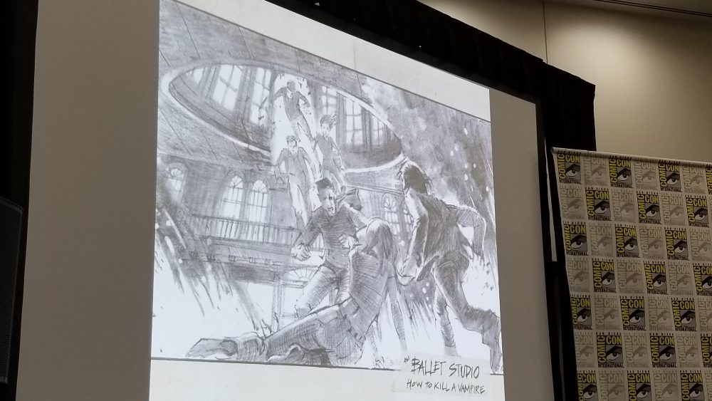 Hardwicke then presented an extensive number of slides with production notes on many of the characters while discussing various costume and other creative choices.