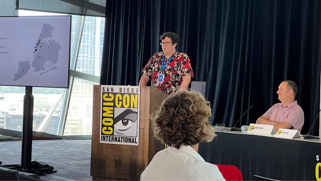 Crain and Davis ran through a slideshow of cultural institutions that participate in these library programs, and the list was diverse. Comic-Con-adjacent programming includes The Society of Illustrators (New York), Poster House (New York), the Museum of Pop Culture (Seattle), Rose City Comic Con (Portland), the Cartoon Art Museum (San Francisco), and the Peanuts Museum (Santa Rosa).