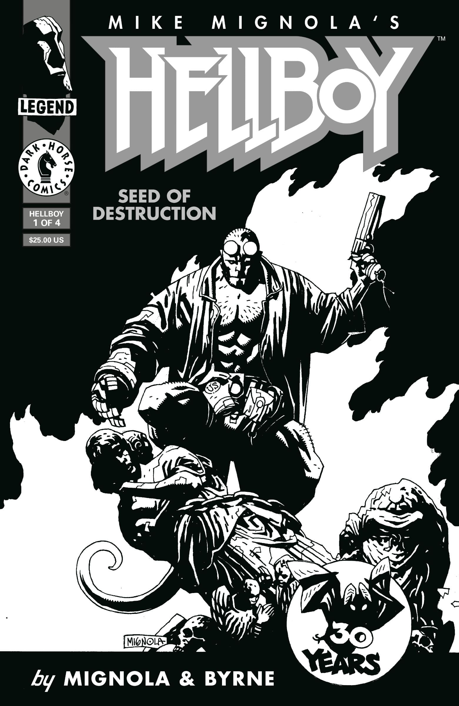 - Hellboy: Seeds of Destruction #1 30th Anniversary Edition B&W Cover with 16 Bonus Pages by Mike Mignola – $25 – limited to 1,500 copies, limit 5 per person per day