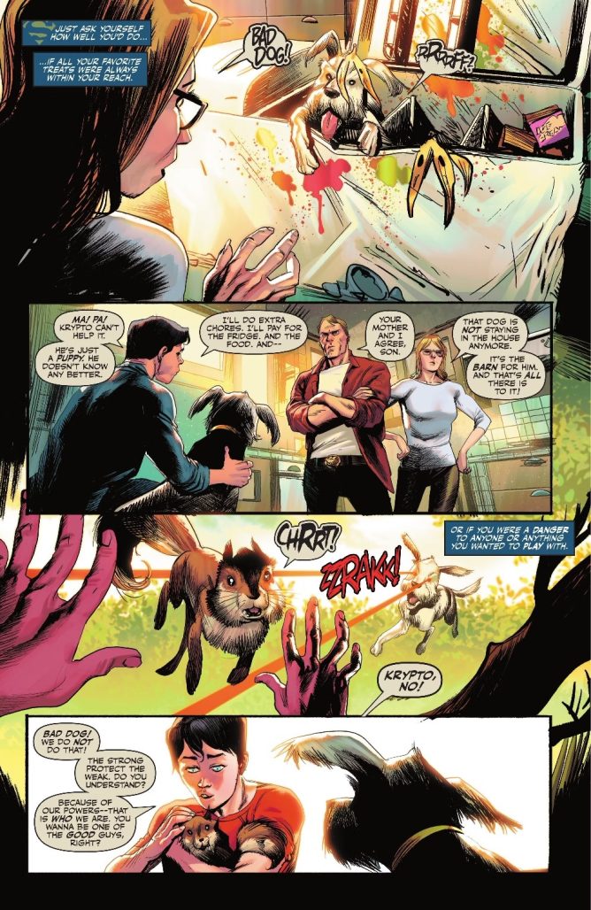 Dan Slott: Tons! I’ve spent twenty years away from the DCU. During those twenty years, you get ideas. Then you write it down and you put it in the file. There are a lot of characters I would love to play with. The really obscure ones will show up in Superman Unlimited. DC will never do series about Ultra the Multi-Alien, so it’s a ticking clock for when Ultra the Multi-Alien shows up in Superman Unlimited because I love him so much. One of our characters hails from Gorilla City, so we gotta go to Gorilla City eventually. A lot of the “big guys” who hang out with Superman can pop by the book anytime. We’ve seen Batman pop in a couple of times. Robin (Damian) is going to feature prominently in issue #4. You will see more guys. Are there characters I would like to write minis and series for? Absolutely. There’s one character that Mike Allred and I dearly love. We’ve talked about maybe pitching it once he’s done with his Wonder Woman project. I think the pitch for it so strong that I told the guys at DC Studios, “I think this will make a great TV show.” I pitched them the premise of the hook. I’m dying to write that comic just to show how it could work.