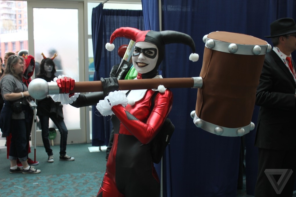 Real enough to look dangerous, but fake enough to get through screening, CCI Security checks each “weapon” to make sure it’s safe.Good cosplay always prompts a bit of a double-take, giving you the feeling that your world has been momentarily invaded by something weird. The critical mass of characters at Comic-Con adds another layer, exposing a giant cross-section of the nerd collective unconscious where Batwoman is friends with Solid Snake and a thousand Deadpools roam San Diego’s Gaslamp district. And the weapons check is like some kind of surreal bureaucratic stopgap, designed to let these fictional worlds converge. Are you a world-warping demigod? Fine. But you’re going to have to tag your staff just like everybody else.