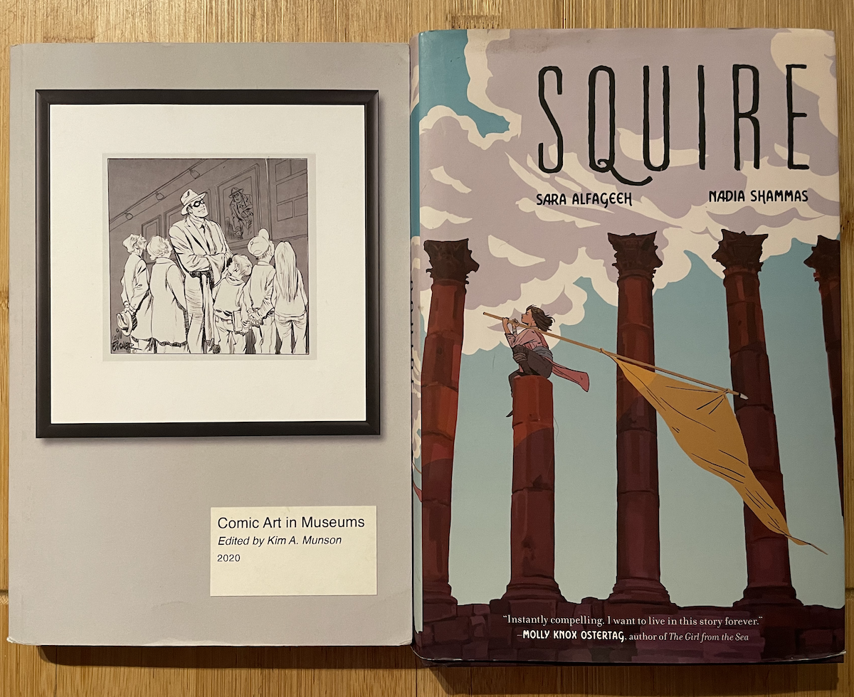 REBECCA OLIVER KAPLAN: I don’t have any fancy words to share this weekend. But, I’m returning to Squire by Sara Alfageeh and Nadia Shammas and finally starting Comic Art in Museums, edited by Kim A. Munson.
