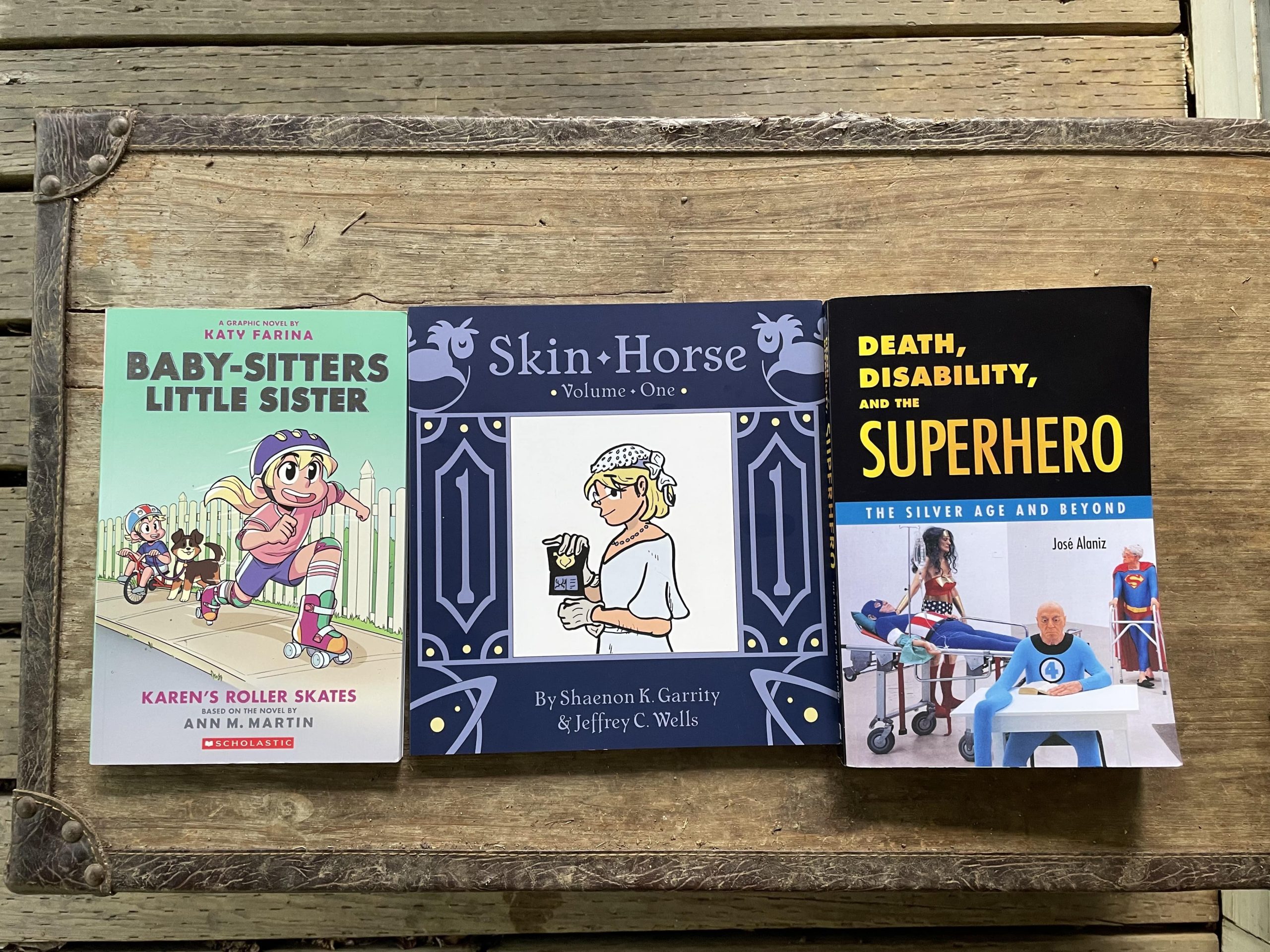 REBECCA OLIVER KAPLAN: I will be purchasing Zack Quaintance’s weekend reading Valleyesque to read in the future, and maybe gift. Growing up, I regularly visited the Rio Grande Valley region with my Albuquerque-based family. But for this weekend, I will be finishing up Death, Disability, and the Superhero: The Silver Age and Beyond by José Alaniz. The prose book has so far been a great resource for anyone interested in the topic, and something I started reading for a piece about superheroes and migraines. As I said in the SDCC winners and losers article, I got a pinched nerve in my neck and sinus infection at the convention. I only like to read certain books in this much pain, so I will also be reading more BSC. At the top of my list is Katy Farina’s Baby-Sitters Little Sister: Karen’s Roller Skates, in the story, Karen breaks her arm, and I feel commiserating with Karen. Last but not least, Shaenon K. Garrity gifted me the first volume of Skin Horse by Garrity and Jeffrey C. Wells.