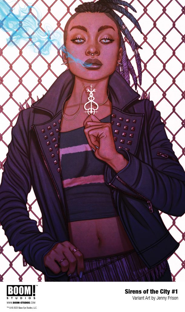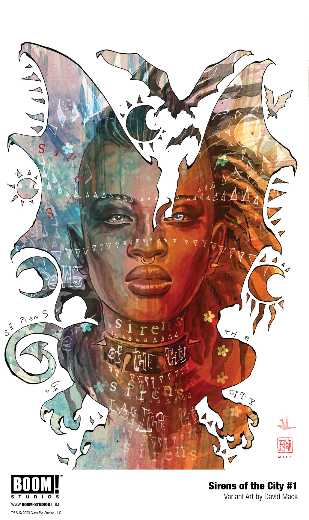 Sirens of the City #1 features a main cover and a 1:50 foil version by Randolph, and variant covers by Jenny Frison (open-to-order and 1:10 foil version), Lee Garbett (1:25), David Mack (1:75), and Skottie Young (FOC Reveal).
