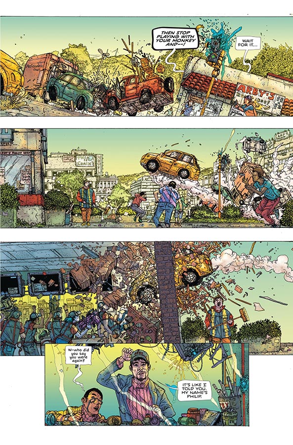 “We wanted this to be a book in the tradition of Geof Darrow’s Hard Boiled or Shaolin Cowboy,” said Camp. “Big ideas and big feelings; high-scifi & inventive action. It’s taken years to get it just right, but that effort has resulted in something surprising and special.”