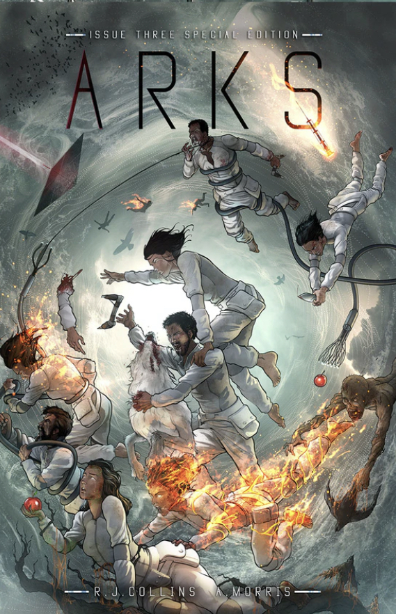 Arks, which is one epic science fiction story broken into six parts, is written by screenwriter and illustrator Rory Collins, and returning for this issue is digital arts whiz Andrew Morris. Digital artists James Daly and Neil Copland also return to help with the tech characters and creatures found in the installment’s pages.