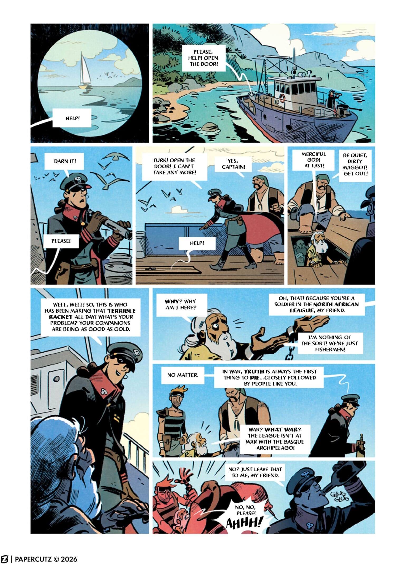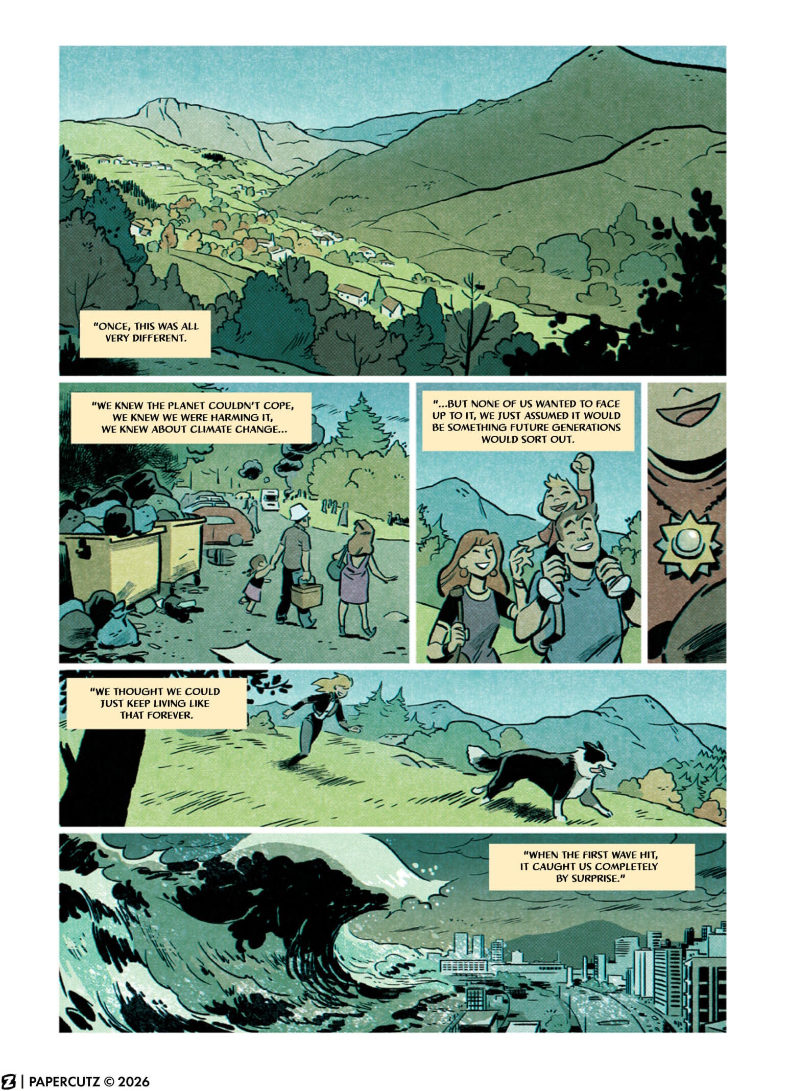 Papercutz also announced Archipelago, a post-apocalyptic graphic novel by Basque writers Martin and Xabier Etxeberria, artist Alex San Vicente (aka Sanvi), and colorist Sergio Román Sedyas. Set in 2103, after climate change plunged many countries into a new dark age, the book follows Jare, “a young woman with hidden powers who lives in the Basque Archipelago, will find herself unexpectedly plunged into a world of dangerous intrigue that seeks to disrupt old balances and create new alliances.”