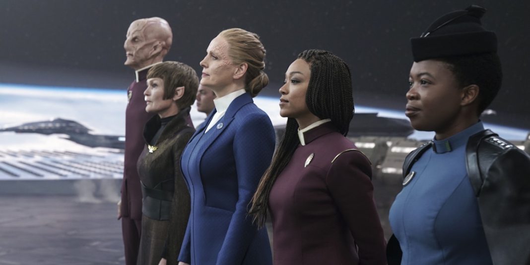 Disco’s fourth season finale, “Coming Home,” written by show runner Michelle Paradise and directed by series mainstay Olatunde Osunsanmi drew on concepts explored in individual episodes over the course of the heavily serialized season to deliver a spectacular conclusion – one that retroactively colored many of the character arcs we’d been watching unfold over the course of the season, especially those of Book, the complicated antagonistic character Ruon Tarka (Shawn Doyle), the good-intentioned United Earth General Ndoye (Phumzile Sitole), the much-missed Tilly (Mary Wiseman), and Disco’s stretched-thin Doctor Hugh Culber (Wilson Cruz).