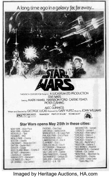 “For most of America, this was the first time they got a glimpse of the galaxy far, far away,” said Charles Epting, the director of pop culture and historical consignments at Heritage Auctions.