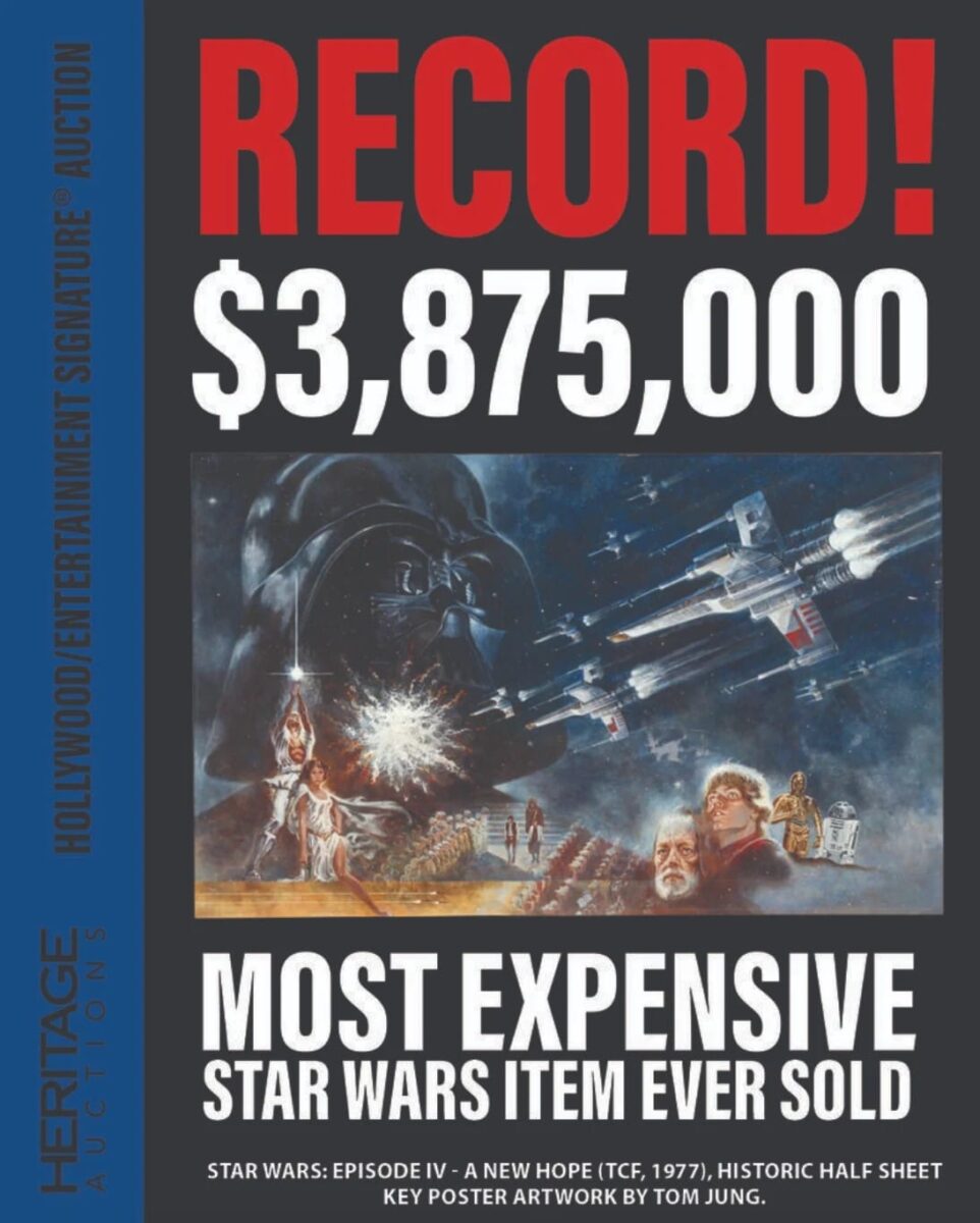 The sale set records for the highest-selling piece of memorabilia from the film franchise, and in general, for any movie poster artwork, Epting said.