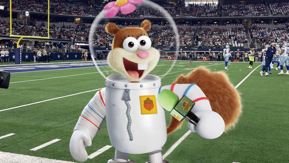 For the first-time ever, characters from SpongeBob SquarePants will join the telecast live, with an animated SpongeBob SquarePants (voiced by Tom Kenny) and Patrick Star (voiced by Bill Fagerbakke) joining CBS Sports analyst Nate Burleson and play-by-play announcer Noah Eagle live in the booth to call the game. Sandy Cheeks (voiced by Carolyn Lawrence) will make her sideline reporting debut, while Larry the Lobster (voiced by Mr. Lawrence) provides live commentary. NFL Slimetime’s Young Dylan and Dylan Schefter will also report live from Allegiant Stadium in Las Vegas, Nev. Dora the Explorer (voiced by Diana Zermeño) and Boots (voiced by Asher Colton Spence) help explain penalty calls during the game.