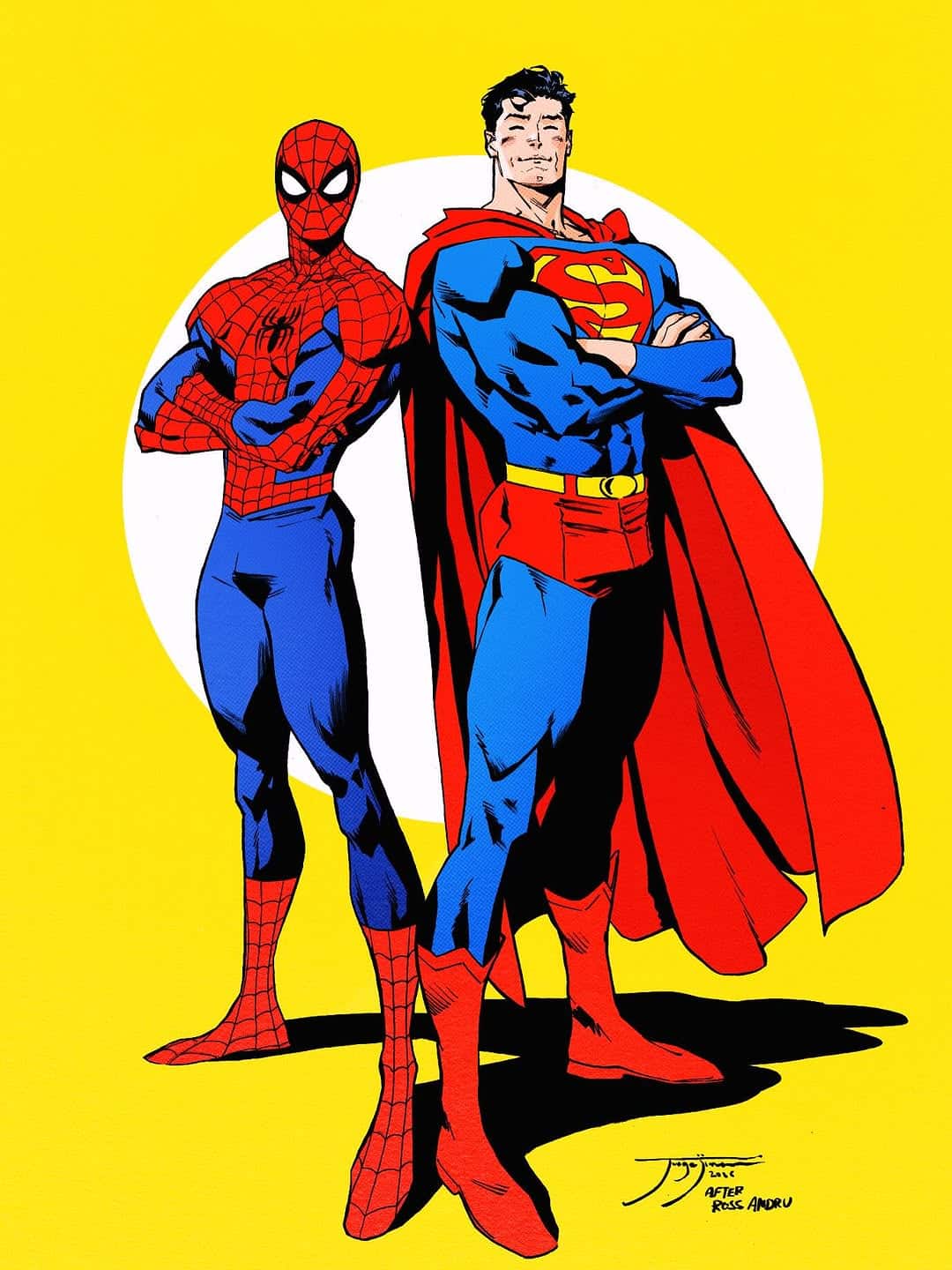 As previously announced, the Superman/Spider-Man crossover is headlined by the “Truth, Justice, and Great Responsibility” from writer Mark Waid and artist Jorge Jiménez, in which intrepid newshounds Clark Kent and Peter Parker uncover a conspiracy that pulls Superman and Spider-Man into a universe-spanning threat involving Brainiac and Doctor Octopus. DC has revealed that Jiménez has also created a new pin-up paying homage to Ross Andru’s iconic back-cover illustration from Superman vs. The Amazing Spider-Man, which will appear as an interior page. In fact, Jiménez posted the piece on his Instagram yesterday.