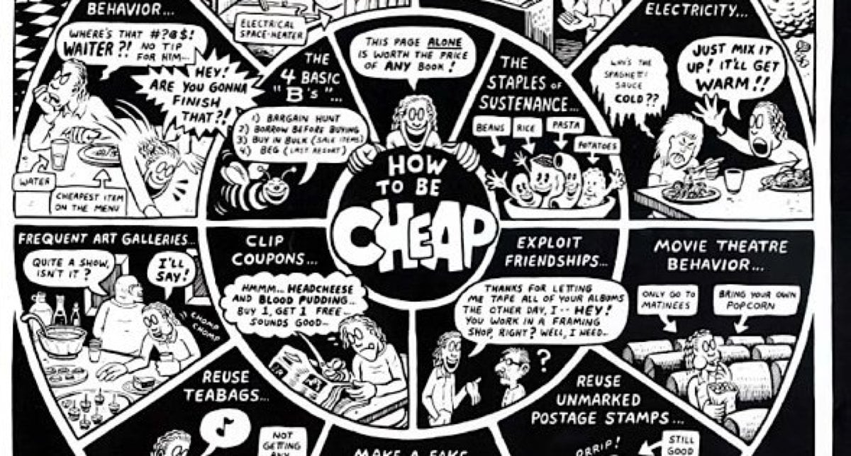 PS: You can apparently still buy a copy of Joe Matt’s “How to Be Cheap” poster at Kitchen Sink.