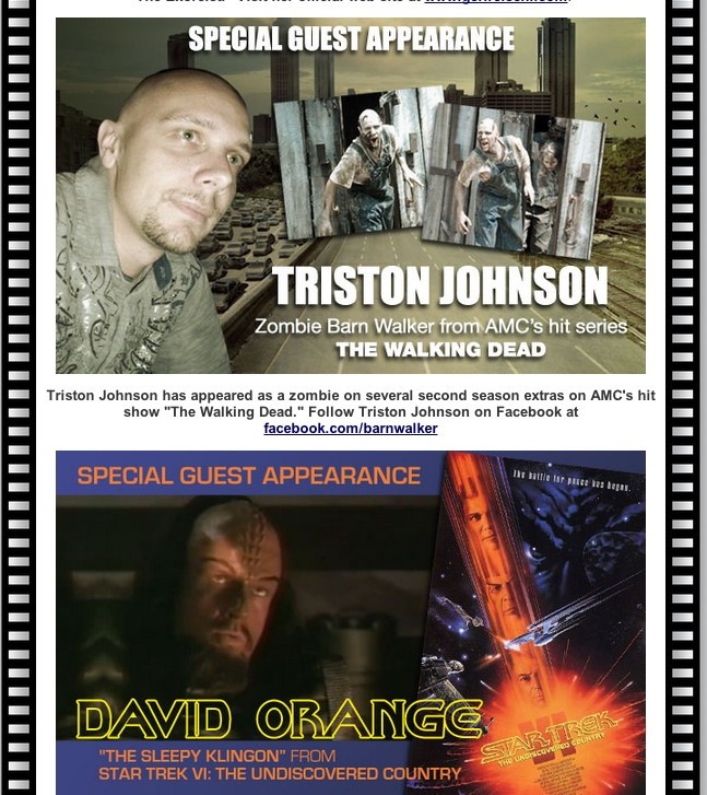 Other guests, who will be appearing at the expo, include Paris Themmen (best known as Mike Tee Vee in the classic film Willy Wonka and the Chocolate Factory), Matt Hardy (professional wrestler), Geri Reischl (best known as Jan Brady from Sid & Marty Krofft’s Brady Bunch Variety Hour), David Orange (best known as the Sleepy Klingon from the motion picture Star Trek VI: The Undiscovered Country), and Triston Johnson (Zombie Barn Walker from AMC’s hit series The Walking Dead).
