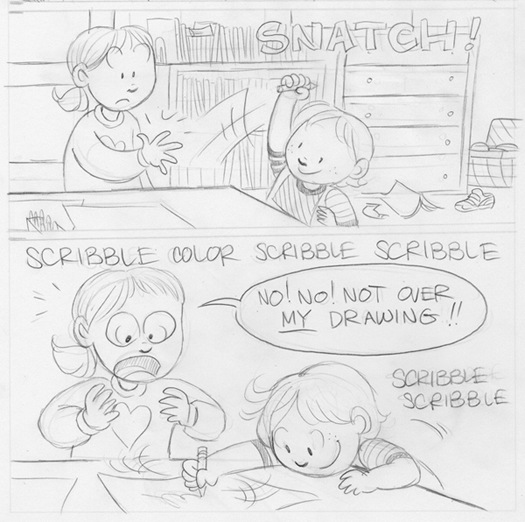 While cartoonist Raina Telgemeier has been revealing a few details of her next graphic novel on her tour for Drama, Publishers Weekly made it official: her next book will be a companion of sorts to the autobiographical SMILE. Called SISTERS, it deals with “the inner workings of [Telgemeier’s] family,” specifically, her relationship with her young sister, which as you can see from the above artwork posted on her blog, wasn’t always smooth sailing.