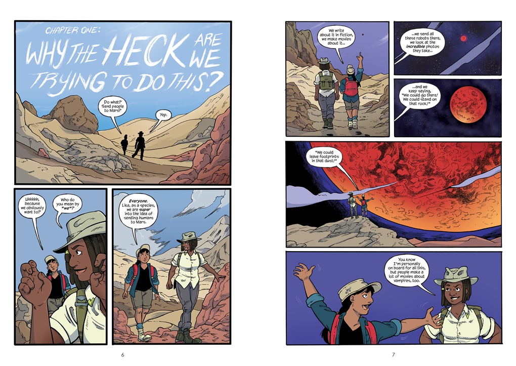 2020 Projects: I’ll be debuting The Mars Challenge, published by First Second and illustrated by Wyeth Yates, which gives a guided tour of the science and logistics of human spaceflight, and explains what stands between us and a crewed mission to Mars! (See preview below)