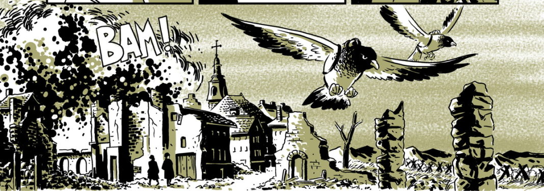 2020 Projects: In 2020 I’ll be wrapping up work on Four-Fisted Tales: Animals in Combat for Dead Reckoning. The book’s a collection of real-life short stories of animals in war–messenger dogs, carrier pigeons, etc. The book is fully roughed now and I’m starting to ink and tone. I’m fairly happy with how things are turning out. Here’s a preview page I just finished: