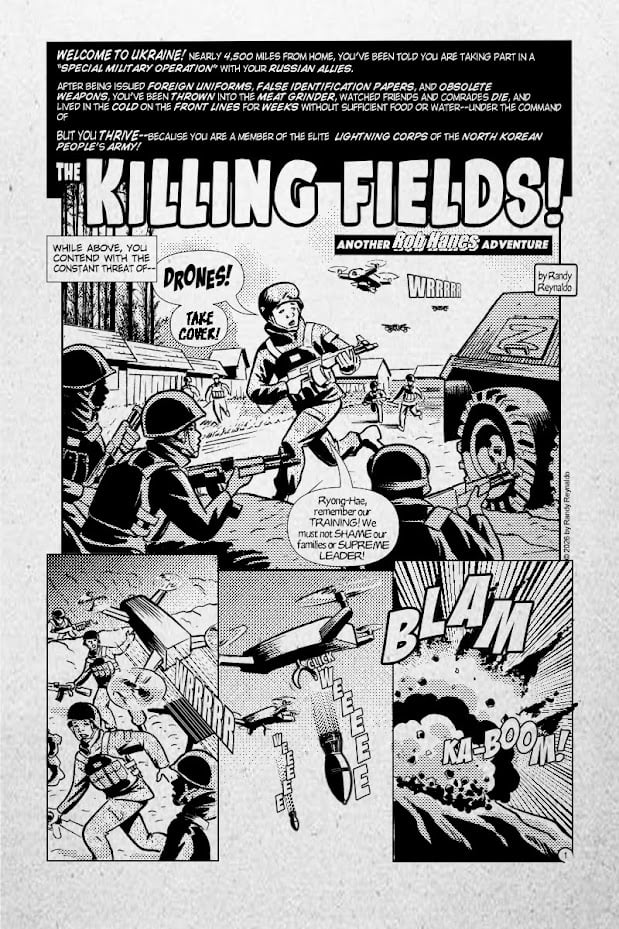 2026 Projects: I continue chugging along with my long-running globetrotting action-adventure series, Rob Hanes Adventures, with issue 27 coming in 2026. After a fun change of pace in issue 26 when Rob went into space, the series comes down to earth in issue 27 when Rob goes into Ukraine to rescue a CIA agent caught in the war zone. People can find out more about my work and order new and back issues (and trade paperbacks) at wcgcomics.com.