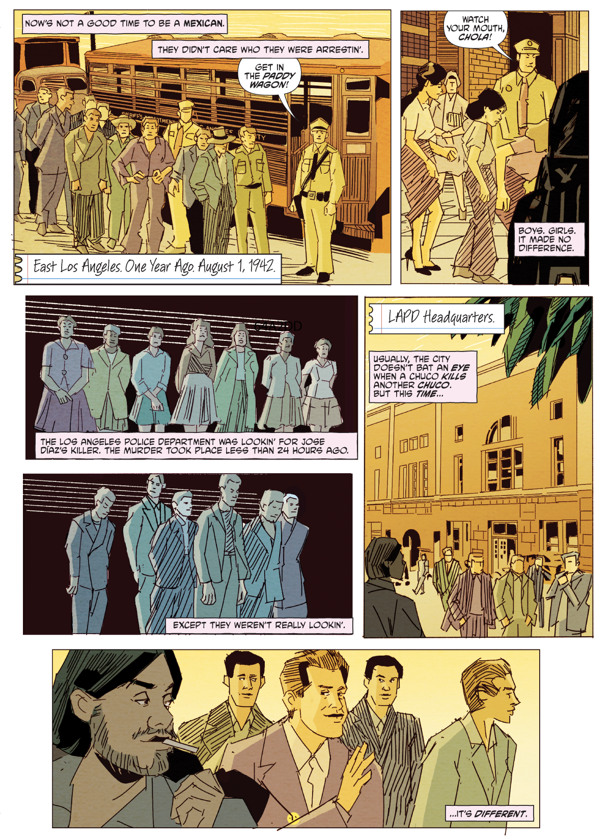 2025 Projects: Chicano Noir: Death to Pachuco #1 by Rachel Merrill, Lee Loughridge, and myself. During the summer of 1943, Los Angeles became a hotbed of tension and conflict as a series of fierce clashes erupted between U.S. Navy members and Mexican American youth stemming from the murder of Jose Diaz. Private eye Ricardo “Ricky” Tellez needs to find the Sleep Lagoon Killer before the racist mob kills him in the Zoot Suit Riots. Limited release in July 2025