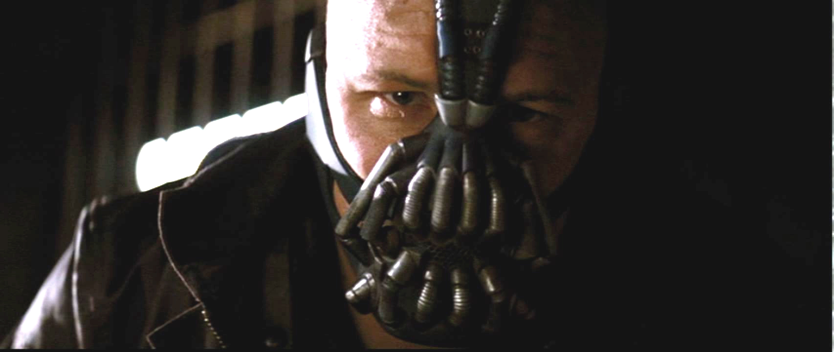 Bane broke Bruce financially, and now he breaks Batman physically. Batman labels Bane terrorist who “is so crazy other terrorists won’t work with him,” which is, incidentally, the kind of character spy thrillers used to use to avoid angering real terrorists. Bane counters by labeling himself not the lunatic fringe of a movement but its central pillar, whether he is truly the return of the League of Shadows or merely a madman who has chosen to fly under the League’s colors.