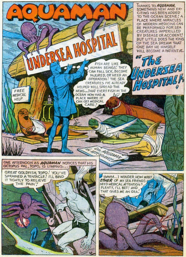The only time there has been any concerted attempt to reprint her incredibly lengthy and “continuity-important” Aquaman stretch in color was nearly 20 years ago in a now very hard to find expensive hardcover. Which only covered less than a quarter of her nearly 800 pages of Aquaman stories. Her tenure is also held back a bit by fans and the big two publisher’s obsessions with “Ages” and continuity. Her 1951-1964 contributions to the character straddle the Golden Age and Silver Age. The latter either starts with the widely accepted Adventure Comics #260 featuring a revamped origin story, or earlier in #229 with the first appearance of the adorable Topo the octopus. So even in DC’s also defunct black and white Showcase Presents line, they skip past anything she did before 1959. Warner grossed over a billion on Aquaman, yet DC hasn’t reprinted a lick of Ramona’s work before or after all that hype. They did put out a couple books for the synergy, but canceled hers.