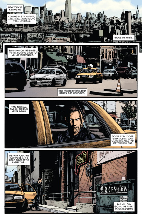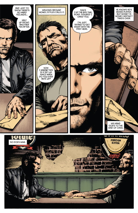 DIGGLE: The concept – and the title, incidentally – started as a one-line pitch from Dynamite, this idea of someone who could steal other people’s abilities. I suspect they had in mind something a little more abstract, like stealing luck or fate or whatever, but I prefer a crunchier type of storytelling. The thing that interested me was not so much the idea of stolen abilities, as the idea that Weaver had built himself an entire persona and lifestyle that was itself stolen. He seems to have everything going for him, but you quickly come to learn that it’s all fake, an artificial veneer. People spend a lifetime of hard work developing and honing their individual talents, and yet Weaver steals them in a handshake. He never earned it. So there’s something kind of cheap and hollow about him. I thought it would be fun to create this traditionally handsome, confident, successful, alpha-male hero, and then very quickly strip all that away from him, reveal him as a sham. And then build him back up into something else entirely.