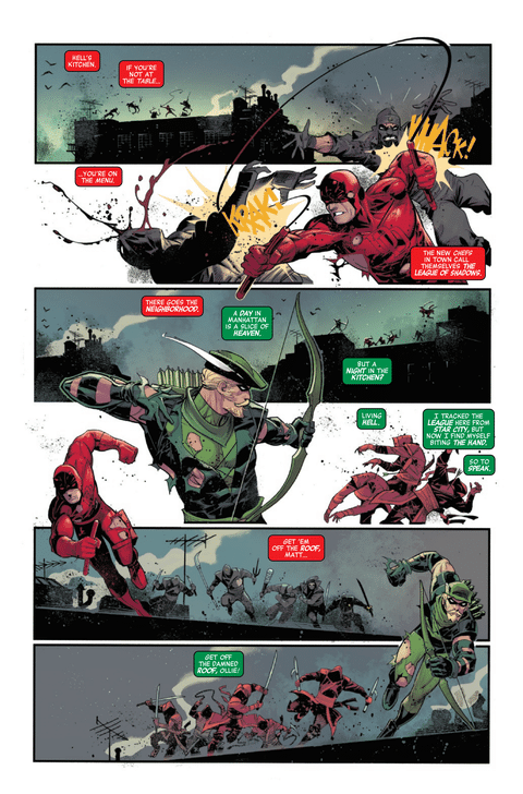 LM: I cheered. This is what I was hoping for more during the Batman/Deadpool crossover. Daredevil and Arrow have really great banter, they poke fun at the absurdity of their situations, and they also do a really cool thing with Count Vertigo and Daredevil that really made great usage of the crossover elements between the two characters. The back and forth dialogue really sold me on this one and it makes me want even more of the two.