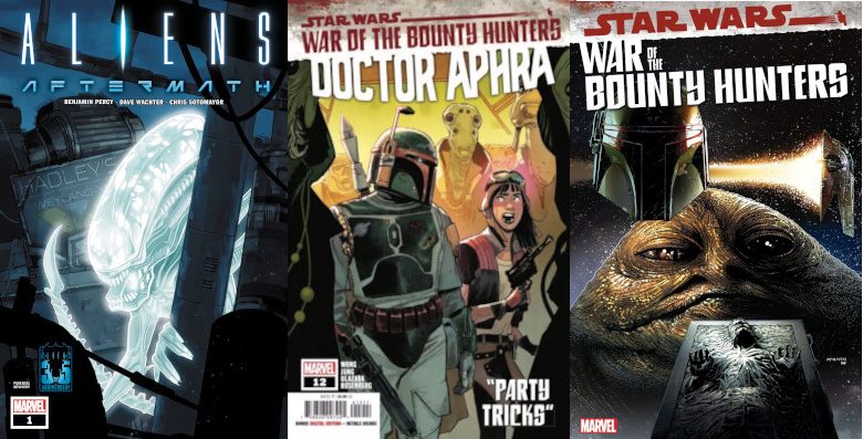 - Not to be outdone by the X-Men and the events of their Hellfire Gala, Star Wars throws its own soiree, as the criminal organization Crimson Dawn auctions off everyone’s favorite frozen scoundrel, Han Solo. This issue of the War of the Bounty Hunter storyline runs in tandem with Star Wars: Doctor Aphra #12. When I saw the initial breakdown of issues that would cover this event I was very skeptical and this issue proves that an event this long can have some foul balls. While still well crafted and executed, Boba Fett keeps showing us how much of a badass he is, but there wasn’t that much emotional tissue for me to care about him wanting to get paid. Even with a few easter eggs and the attempt to make more of the Solo movie, this issue is only helped if you read both issues as the Aphra issue has more of the emotional stakes to this event. —GC3