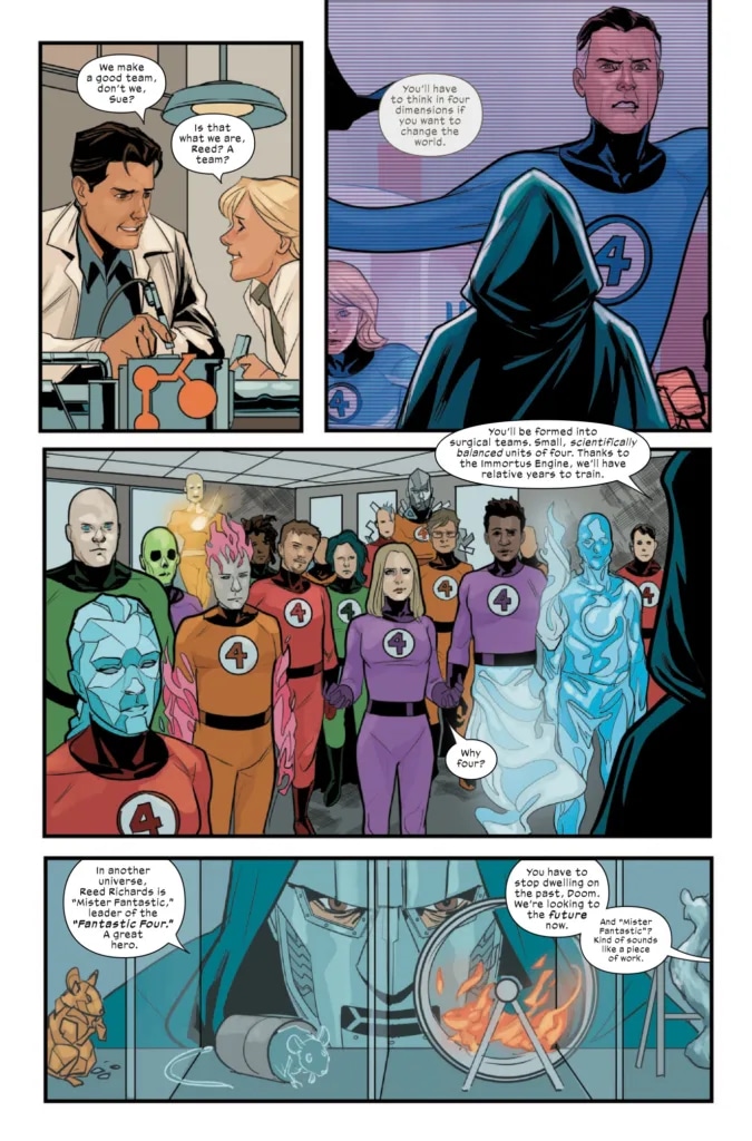 It is these final moments that take this issue from compelling to great. A single panel, really, a shot of Reed’s eyes behind the expressionless armor, and a single word balloon. It radically shifts everything. And it’s a gift to this reader, who has wrestled with feelings of “brokenness” and the nagging sense for much of my life that something was just missing. Camp and Noto bring readers on a journey with Reed Richards that ultimately invites him to let go of the single driving obsession in his life. It is a story not about giving up on your goals but not letting loss and failure define you. It is about moving beyond the mourning what you might have been if you were healthy or born at a different time or in a different place or a world that doesn’t feel so broken. It is about the power of letting yourself hope that a brighter future may be awaiting on the horizon, not in spite of that ever-haunting-ever-present-past, but fueled by them to define who you can be in the here and now, in this panel, not who you’ve been.