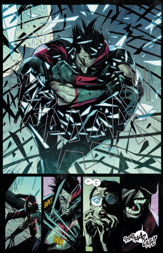 So that leaves Wolverine alone, scarred and full of rage. What is there left to fight for now? Not his own safety or comfort nor the wellbeing of his loved ones. No, Wolverine turns his rage toward the engine of corruption and violence, the Leaders Rasputin, neither out of revenge nor to satiate a death drive. He does it for the many who will come next. The generations trampled by a lack of opportunity, exploited by capital and war. His mission is to light a spark to set the blaze of revolution— which Condon’s script makes clear will continue even after the death of the Mutant Opposition in the final few pages. Logan cannot save those already lost but there are others held captive and turned into tools held by the government, and he cannot rest until they are free.