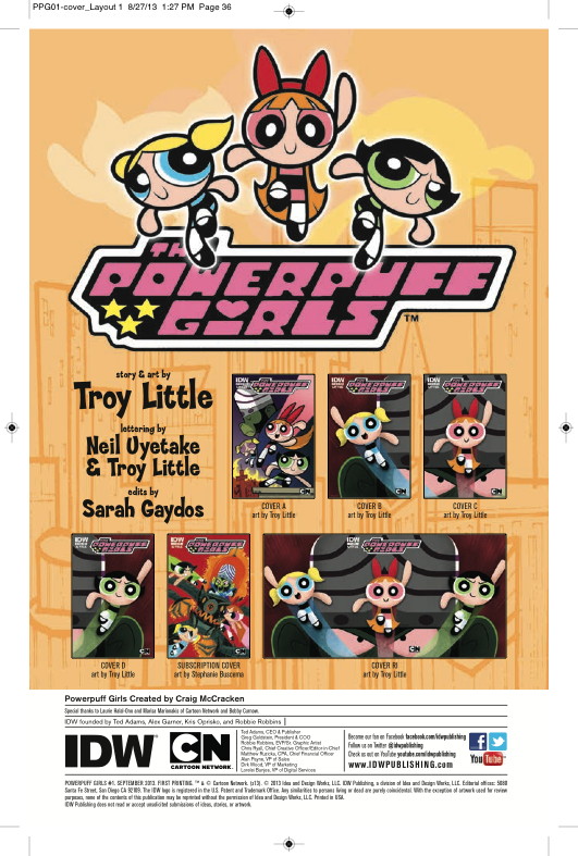 Blossom, Bubbles, and Buttercup are back! The proto riot-grrls of Saturday morning were created by Craig McCracken for the Cartoon Network back in 1998, and created an immediate sensation. While the show hasn’t been on the air in a while, IDW is bringing them back in a new comic written and drawn by Troy Little which goes on sale today.