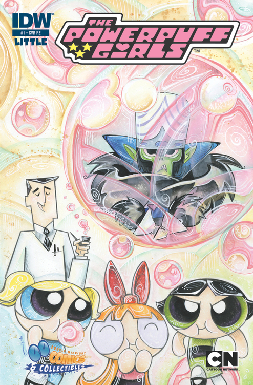 I have a soft spot for the Powerpuffs because I edited their original comic book adventures for DC back in the day and came to appreciate McCracken’s formidable eye for both story and art. To celebrate their return, here’s a preview of the new issue AND a gallery of the retailer variant covers via editor Chris Ryall.