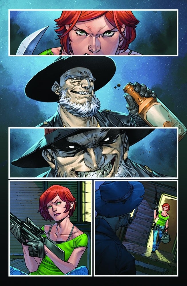 “About She-Spawn herself, I love her. I see her as one of the few supernatural badasses who drives a pick-up truck and has a family cabin in the woods. She goes up against a religious sect to save a child, making her a bad person fighting for something good, with stakes she couldn’t possibly imagine. Ig Guara did meticulous, gorgeous work, with typically beautiful classic Image coloring by Robert Nugent. It just looks stunning. It’s a story with no-seat belt and the engines on high––violent, a little kind, a little mean, about an exploration of the country and a character’s soul.”