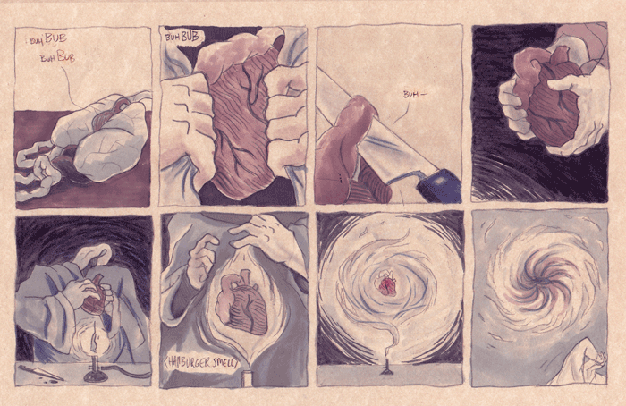 KL: Personally, the art that affects me most is intimate, raw and mysterious, the kind of images and stories that get under my skin and agitate my imagination. It doesn’t matter if it’s pretentious or unattractive. That’s what I aspire to- comics that stick in the reader’s mind and take on their own little life there.