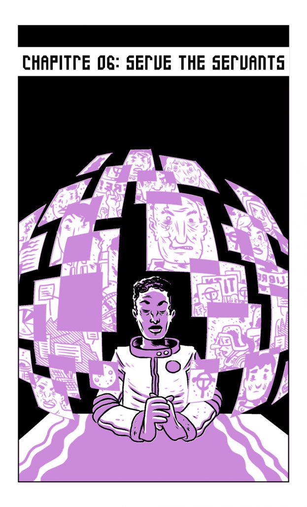 We’ve had the chance to discuss with François Vigneault, an illustrator and comic book artist from Montreal. François is also the art director over at Study Group Comics . We’ve showcased his work on Titan previously as part of the ongoing “year of free comics” feature. If you haven’t read Titan yet, I highly recommend it. It follows the story of MNGR João da Silva, as he is sent to Homestead Station on the moon of Titan to assess the issues with the station and gets caught in long simmering tensions between the genetically engineered workers and the small team of management. The conflict on the verge of erupting could have repercussions and disrupt the whole solar system. Caught between his management duty and the conflicts that are arising, he befriends Titan worker Phoebe who shares his goals to de-escalate tensions on the station, as well as a love of classical music. I’ve spoken with François about his work on Titan, colour, music and the translation of his comic.