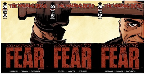 After WALKING DEAD #100 became the best selling comic in 15 years, folks wanted to go back and read the first three parts of the storyline, in WALKING DEAD #97-99. Thus a second printing has been necessitated. The new printing will have new covers, by Charlie Adlard, depicting the villain Negan and his now-infamous baseball bat, Lucille.