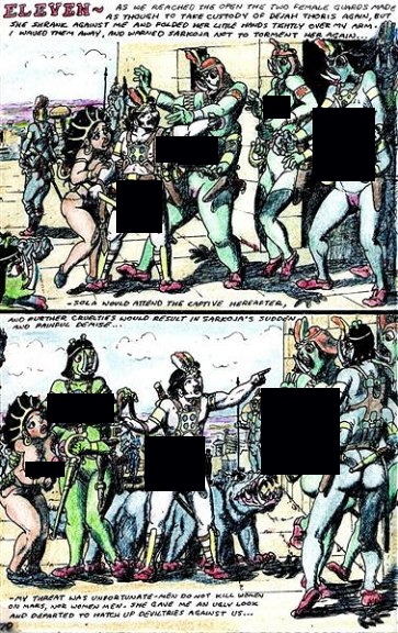 Now this panel is about the only one from this stunningly earthy work that I can even put on here. For you see, when everyone points out that in the books all the Martians are naked, Spratt is one of the few artists who actually went along with that interpretation.